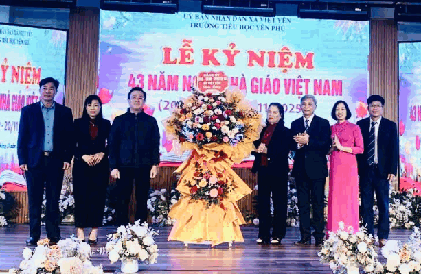 Sáng ngày 20/11/2025, Trường Tiểu học Yên Phú, xã Việt Yên, tỉnh Hưng Yên đã trang trọng tổ chức buổi gặp mặt – tri ân nhân kỉ niệm 43 năm Ngày Nhà giáo Việt Nam. Đây là dịp để thầy và trò nhà trường gửi lời tri ân sâu sắc tới các thế hệ thầy cô đã và đang cống hiến cho sự nghiệp “Trồng người”.